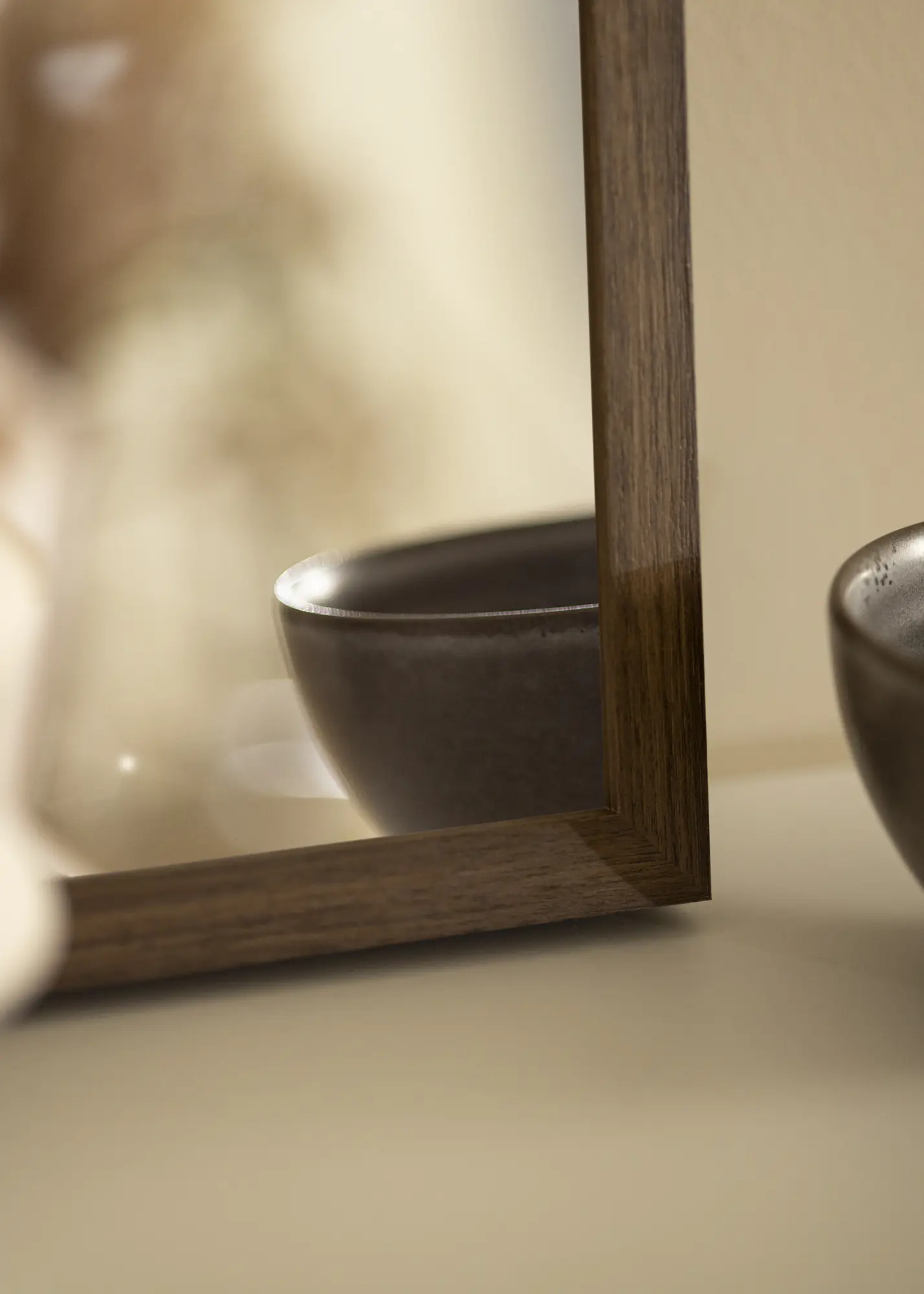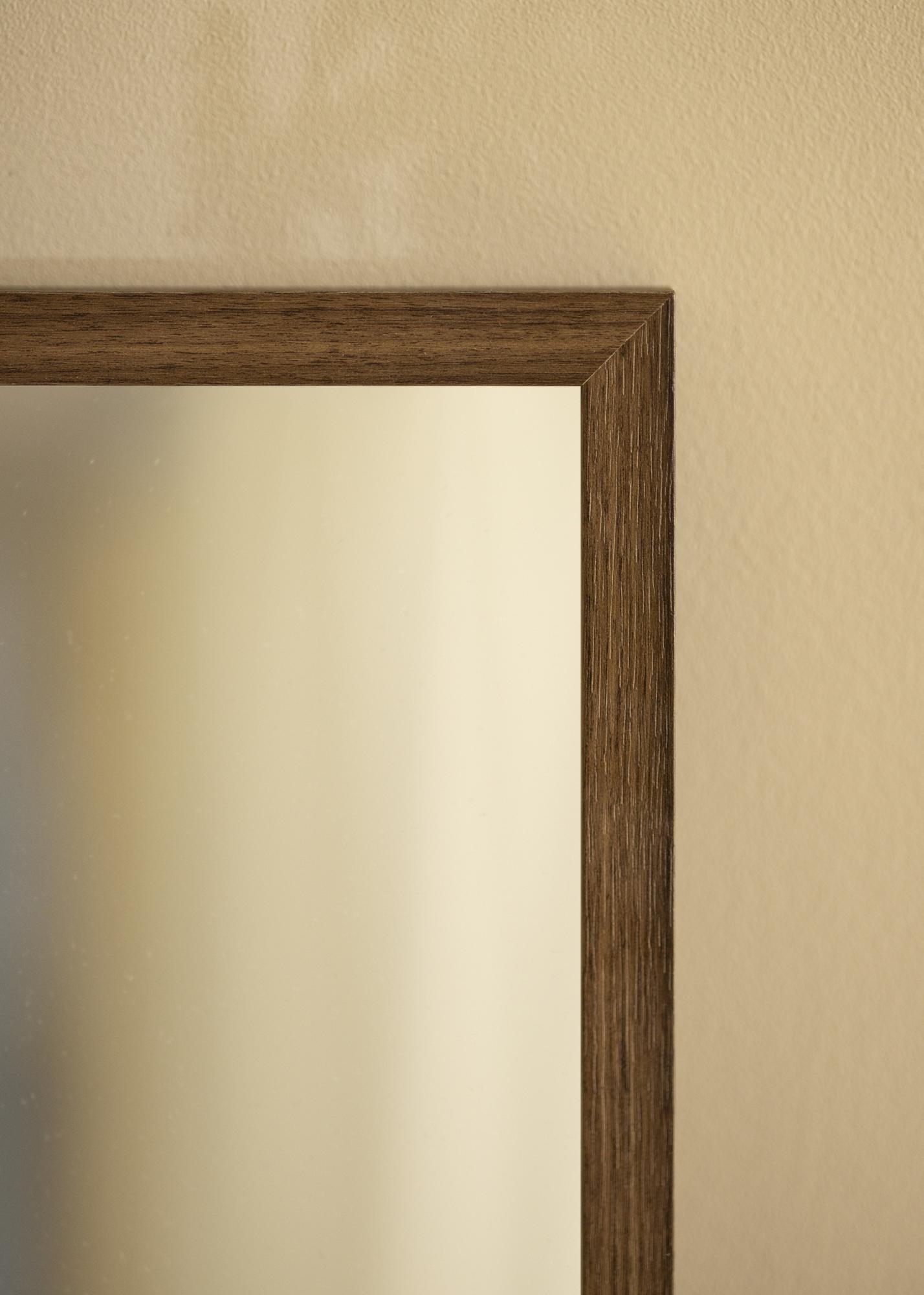 A fa színezett erezetének finom árnyalatváltásai mélységet és változatosságot adnak, így minden tükör egyedi. Ennek köszönhetően a tükör nem csak praktikus részletként működik az otthonában, hanem dekoratív lakberendezési elemként is, amely magához vonzza a tekinteteket.