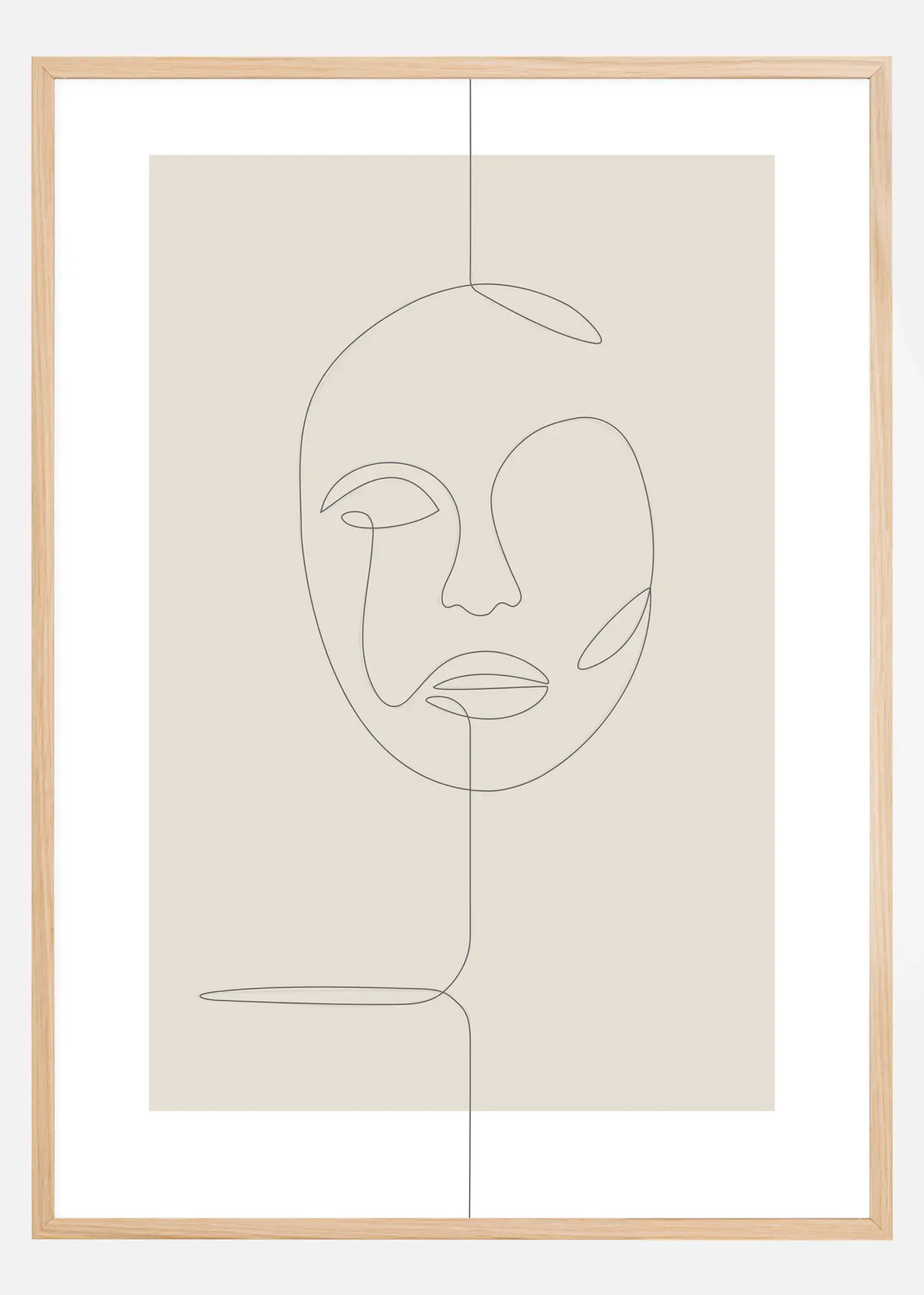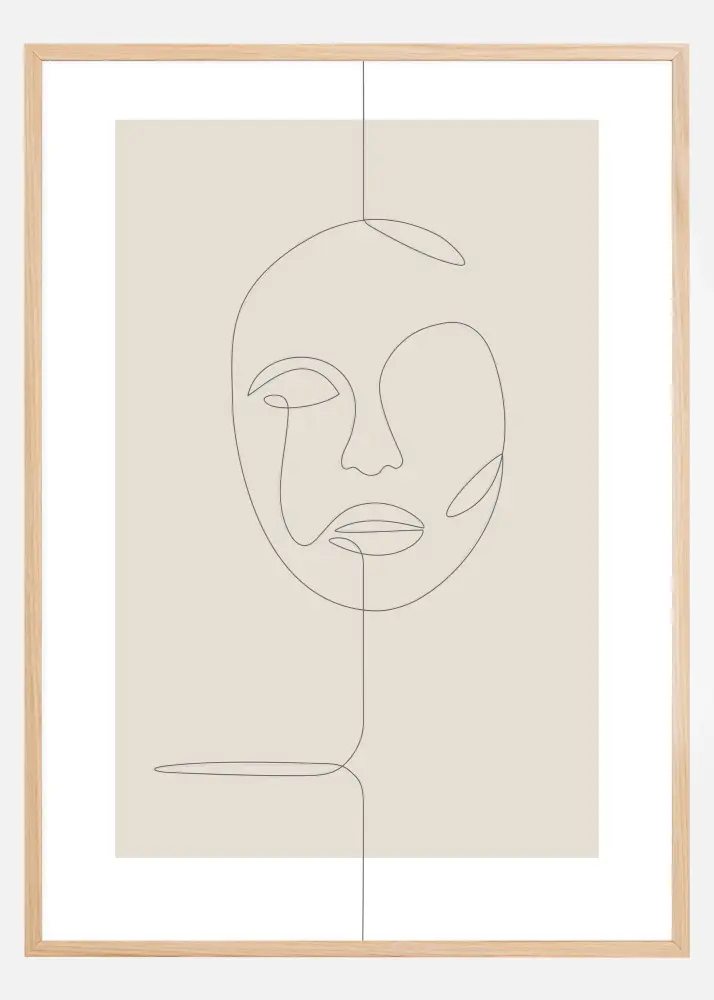 Poszter vékony vonalas rajzzal, amely egy absztrakt arcot ábrázol. Az érdekes ebben az, hogy egyetlen vonallal van megrajzolva az arc. A vonal fentről esik be, mint egy madzag, körbecsavarodik és megalkotja az arcot, mielőtt leereszkedik a kép aljára. A furcsán meggyőző posztert érdemes merész falra helyezni a nagyobb hatás érdekében.