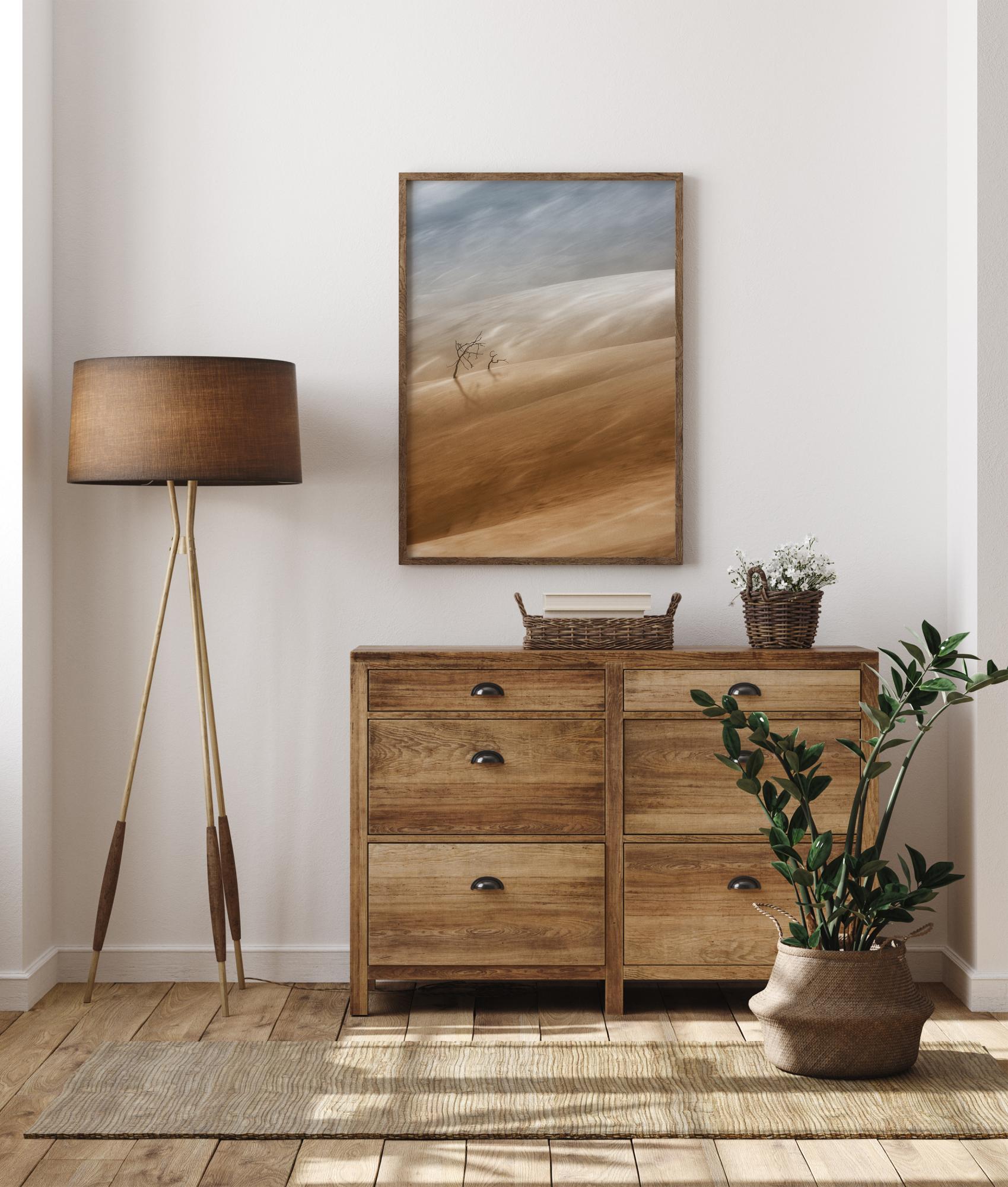 Egy hatalmas sivatagi táj két magányos fával. A lágy pasztellsárga és kék színek harmonikus látványt nyújtanak a ház bármelyik szobájában. Hagyd, hogy ez a fantasztikus tájkép magával ragadjon.