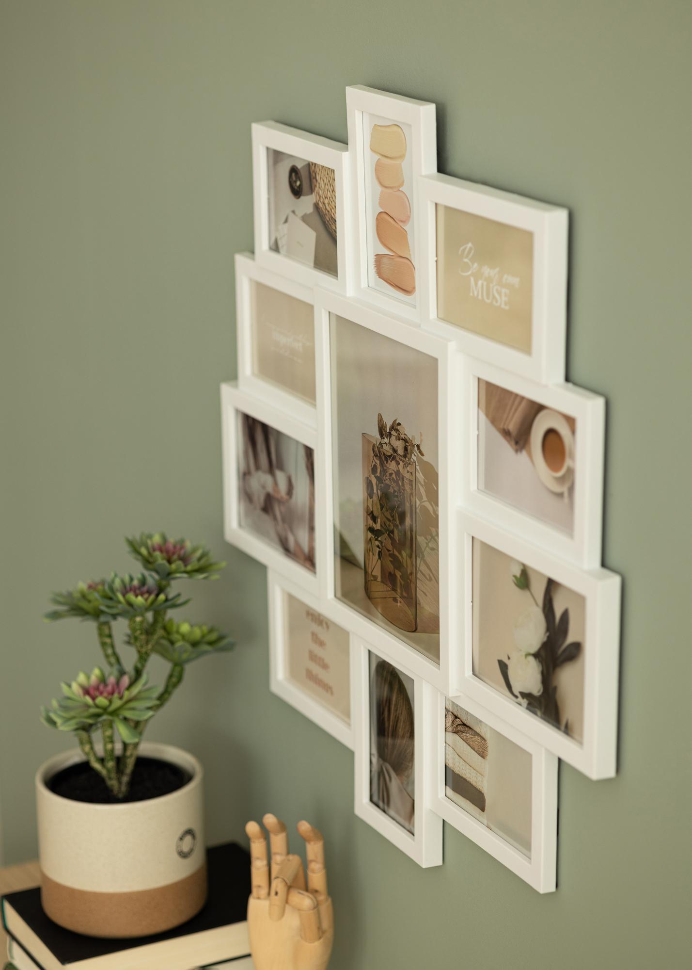 Ezzel a kerettel összegyűjtheted a családod legszebb képeit! A keret 11 képet tárol; 8 db 10x15 cm-es, 2 db 13x18 cm-es és 1 db 20x25 cm-es formátumban. Különböző méretű és tájolású (álló és fekvő helyzetű) képek keverésével játékos és nagyon dinamikus eredményt érhetsz el. A kollázskeret kompozit anyagból készült, semleges fehér színű, amely a legtöbb színű és stílusú motívumokat kiegészíti – tökéletes nyaralási fotókhoz vagy vidám események képeihez!