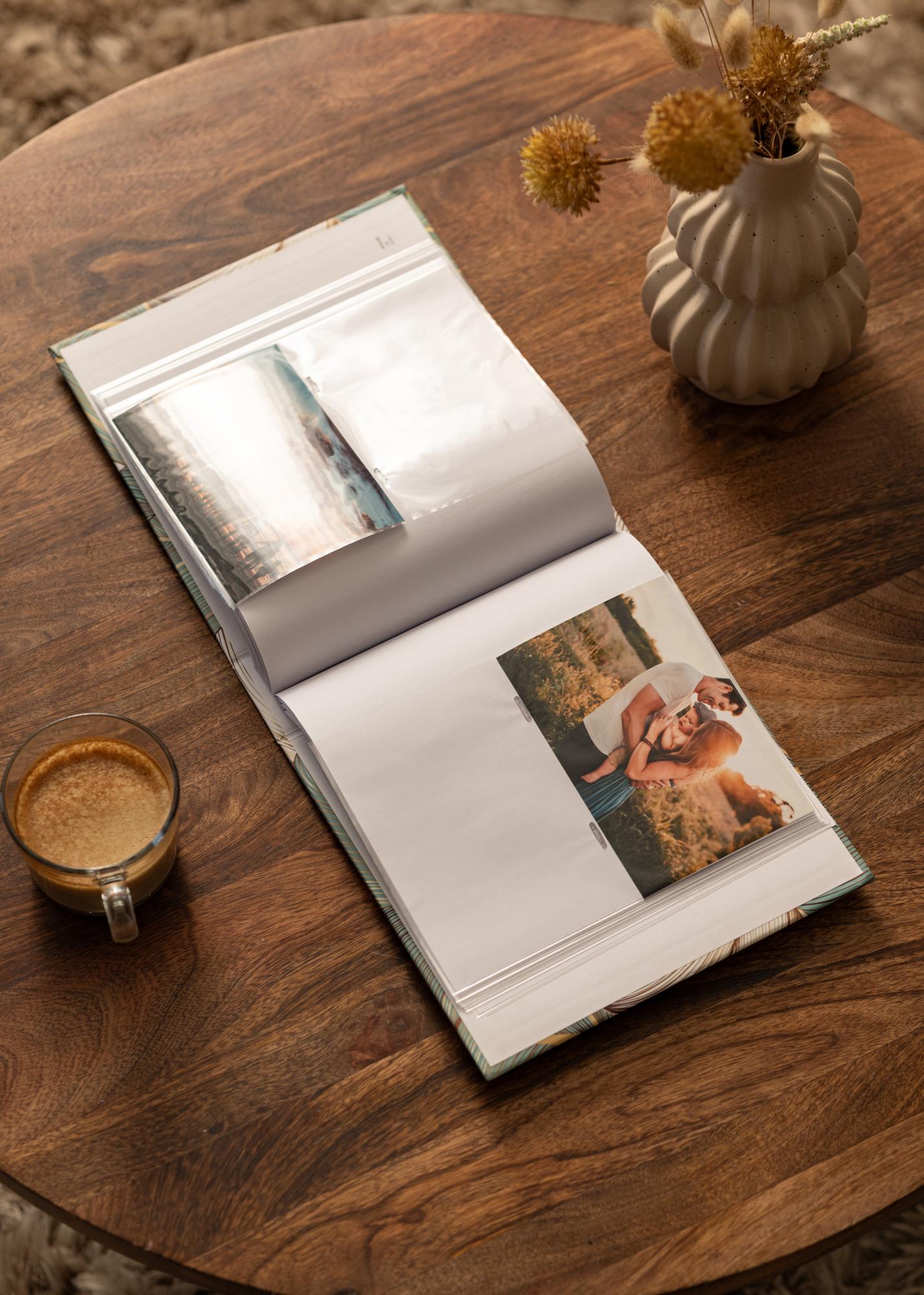 Az album borítói gyönyörű türkiz színűek, ami modern és elegáns érzést kelt. Az oldalak fehérek, ami szép kontrasztot teremt, és lehetővé teszi, hogy a képeid kerüljenek a középpontba. A képek tájolása fekvő, ami harmonikus bemutatást biztosít a fényképeidnek.