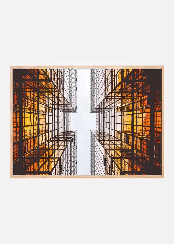 Poszter futurisztikus építészettel, amely grafikai vonalaival izgalmas mintát hoz létre. A színek elhalványulnak a mély narancssárgától az épület alapjától a fehér ég felé. A poszter jól mutat vékonyabb keretben, mind minimalista berendezésben, mind más stílusokkal, grafikai elemekkel is. Kombinálja szívesen más képekkel izgalmas építészetről vagy városi környezetről.