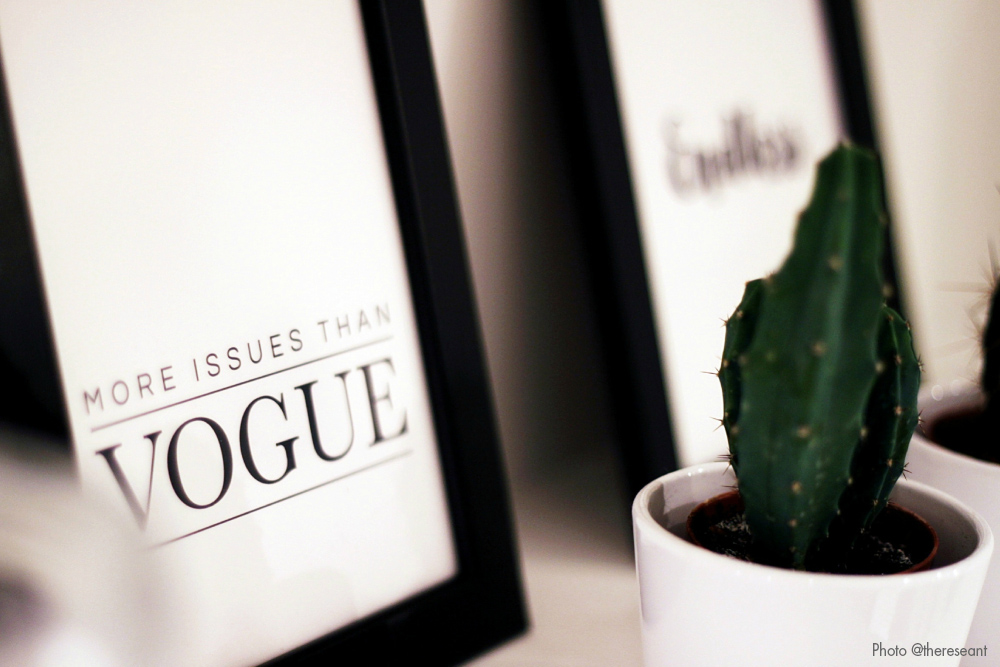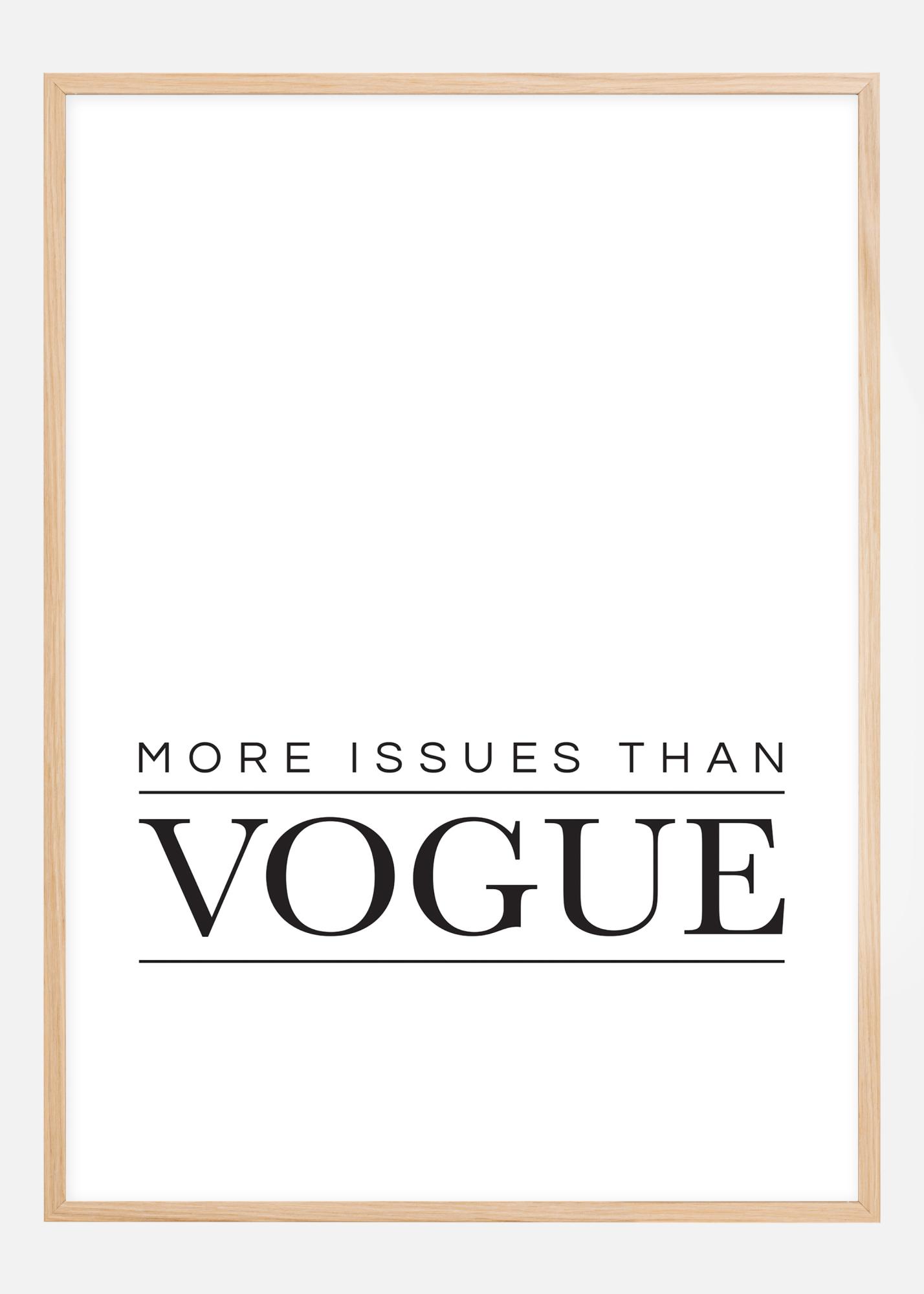 Hozz létre egy vonzó képgalériát otthon különböző stílusú divatos poszterekkel! Itt van egy elegáns, fekete-fehér poszter egy szöveg formájában: "More issues than Vogue" két dekoratív vonallal. A "Vogue" szó egy olyan betűtípussal van írva, amely a nagy divatmagazin logójára emlékeztet. Párhuzamosítsd arany vagy ezüst színű kerettel a luxus érzet érdekében. Mivel a poszter többféle méretben elérhető, könnyen találhatsz egyet, amely illik a faladra.