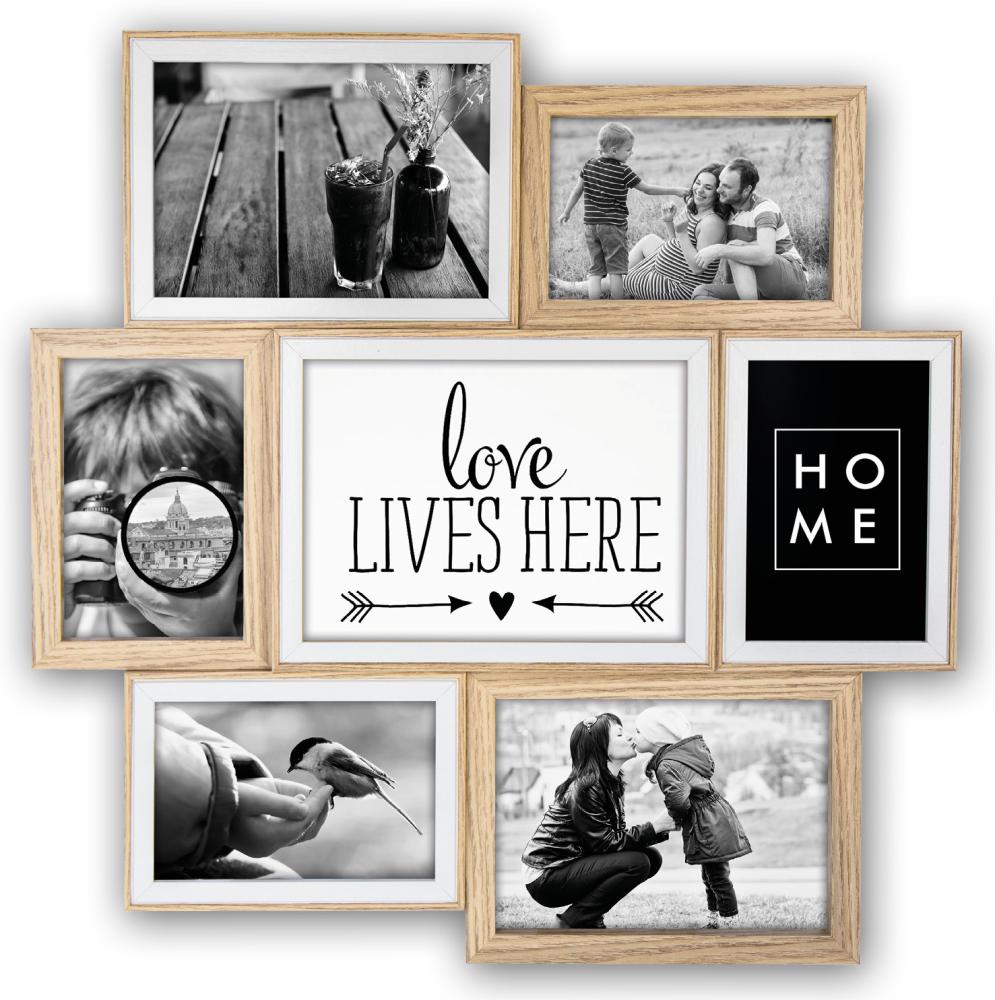 Sku:Stílusos fa kollázskeret, amely 7 különböző méretű kép elhelyezésére alkalmas.