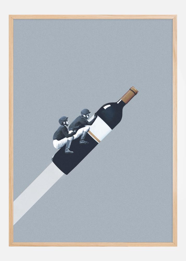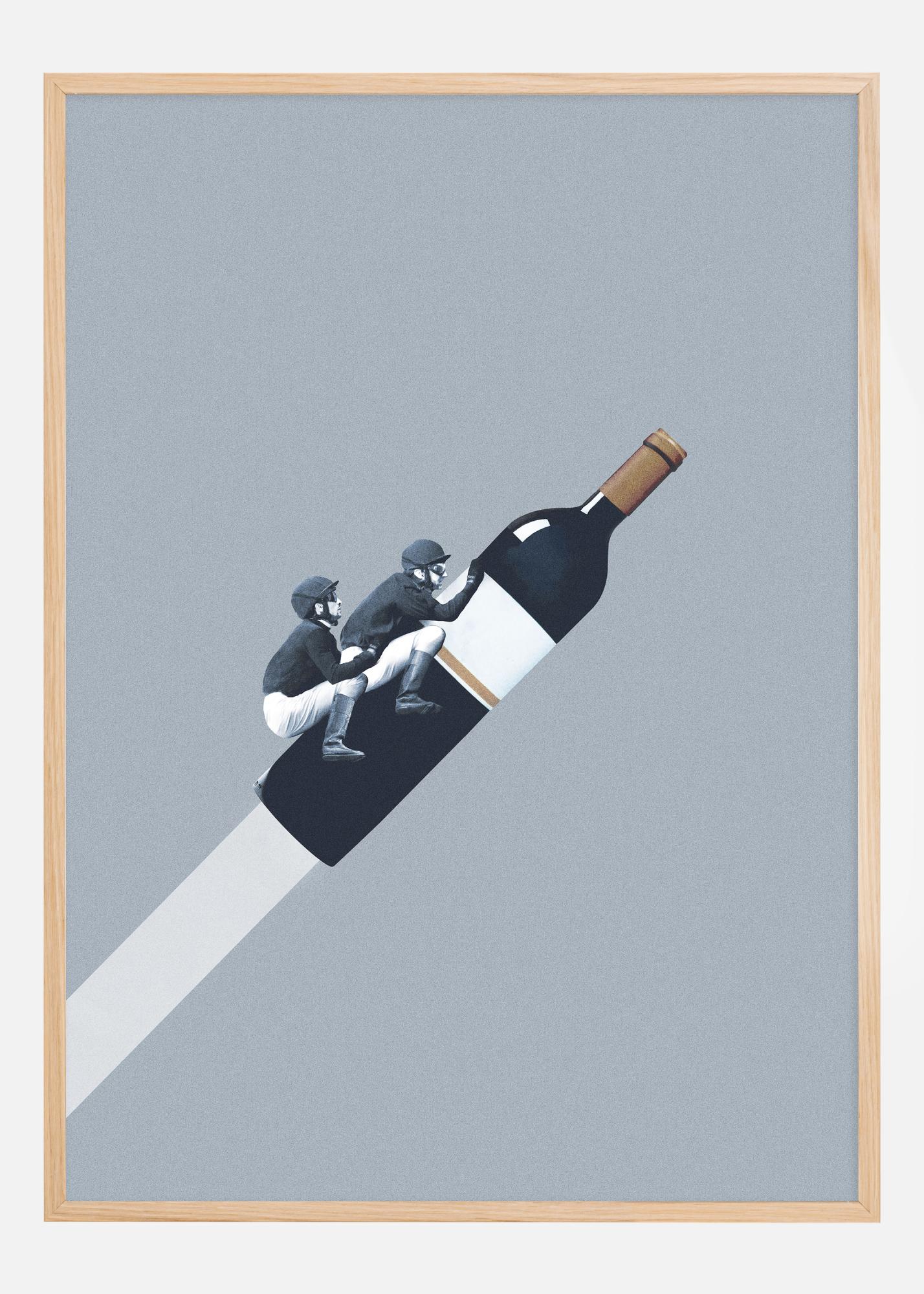 Ez az egyedülálló és gondolatébresztő poszter egy képzeletbeli jelenetet ábrázol, ahol két ember klasszikus lovagló öltözékben diadalmasan lovagol egy megdőlt borosüveg tetején. A jelenet a kreatív fantázia műve, amely összefonja a hagyományost az abszurddal, és kalandvágyat és menekülést ábrázol. Bemutatja, hogyan tudják a lovasok kezelni a mindennapi élet borhullámait ugyanolyan kecses uralommal, mintha a hullámzó tájon lovagolnának át.