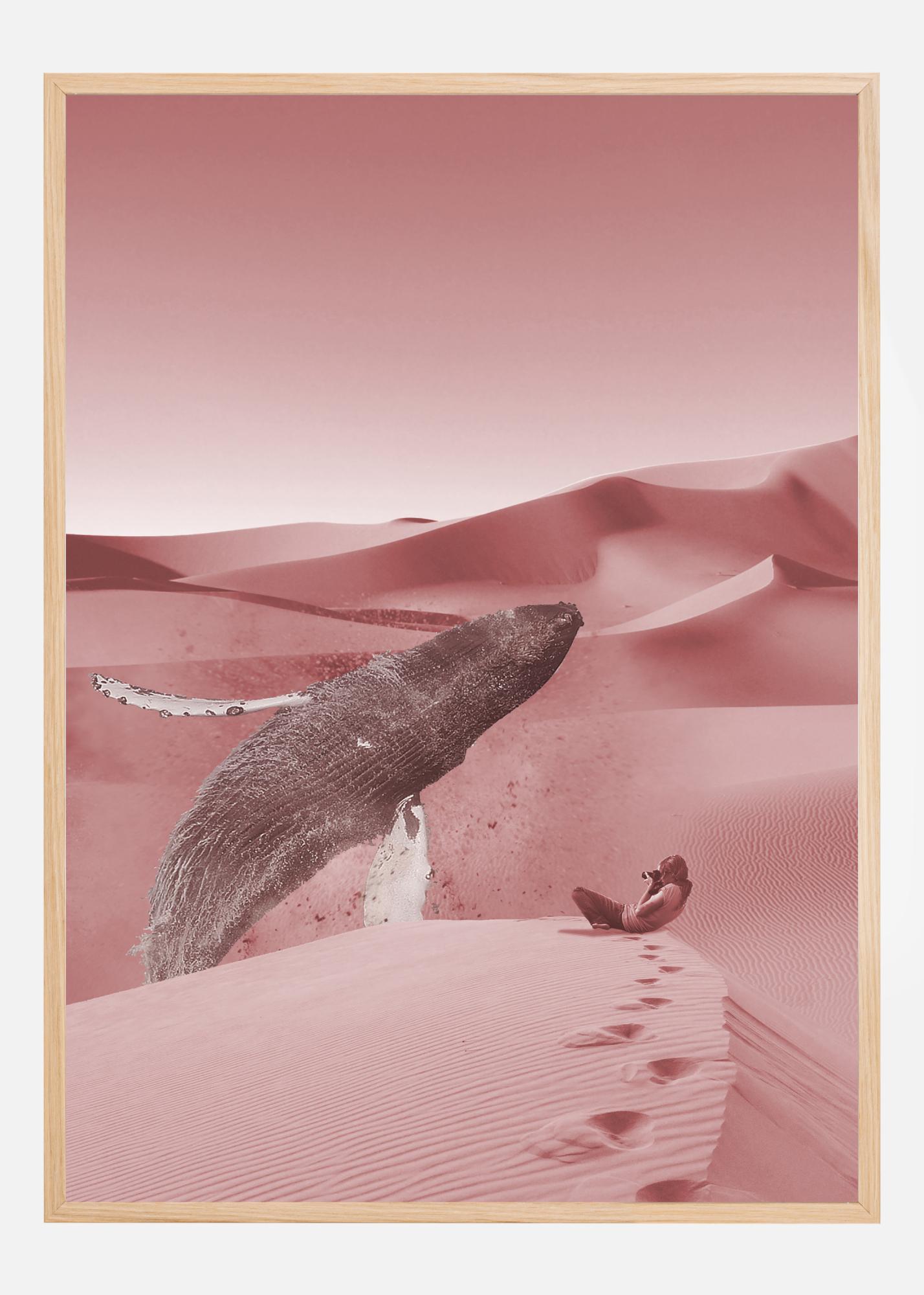 Álmodd magad egy szürreális világba ezzel a művészi poszterrel, ahol egy hatalmas bálna emelkedik ki a rózsaszín homokdűnék változatos tájából. A tenger óriásának és a sivatag hullámzó dombjainak váratlan kombinációja kihívást jelent a valóság számára, és elcsábítja a figyelőt egy fantáziavilágba. A képen átható rózsaszín árnyalat nyugalmat és játékosságot sugall, miközben az egyértelmű lábnyomok egy történetbe vezetnek, amely felfedezésre vár.