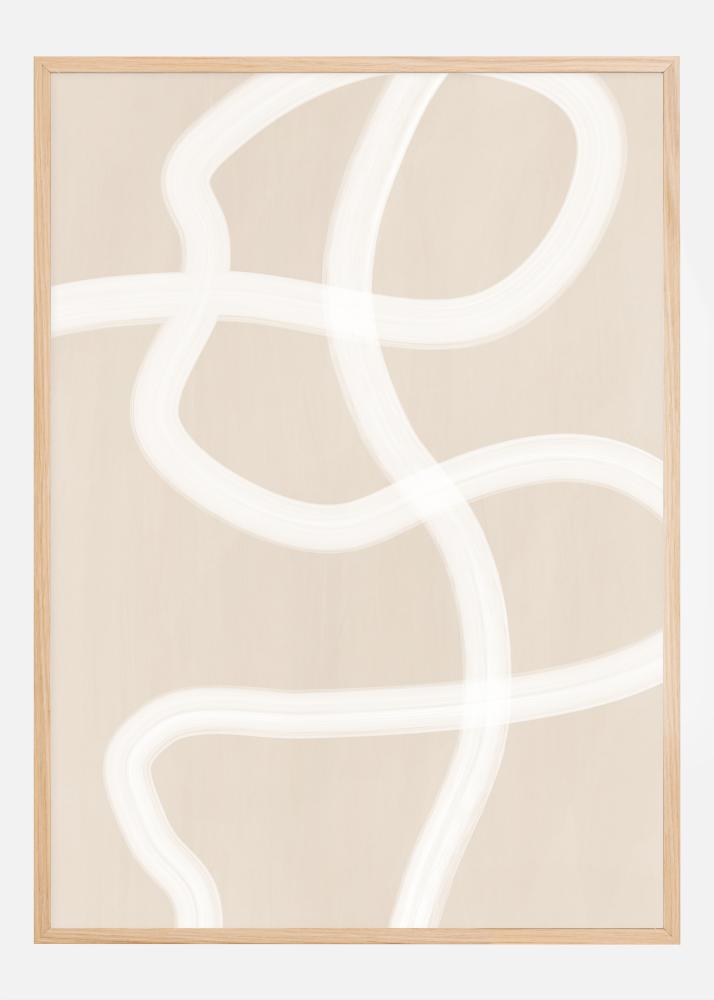 Ez a poszter seprűző fehér ecsetvonásai meleg bézs háttérrel lenyűgöző és kortárs esztétikát kínálnak. Folyékony vonalai és organikus formái mozgás és spontanitás érzést kölcsönöznek, miközben megőrzik a modern minimalista designra jellemző letisztult és tiszta érzést.