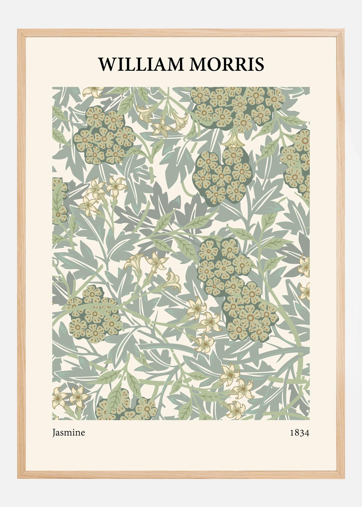 William Morris "Jasmine" posztere a természet flórájának finomságát és dinamikáját mutatja be. Ez a nyomat élettel teli a jázminvirágok és zöldellő lombozat áramló mintájával. A minta egy kifinomult színpalettából komponálódik zöld, bézs és sárga árnyalatokkal, amelyek egy sűrű és hívogató kert érzetét keltik, készen az felfedezésre és csodálatra.