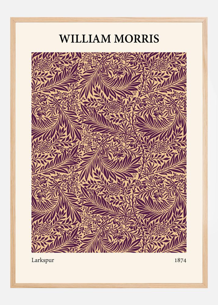 Ez a merész és magával ragadó William Morris-minta egy poszter, amely újraéleszti a klasszikus "Larkspur" dizájnt 1874-ből. A bordó és bézs élénk palettájával ez a nyomat megragadja Morris természet és minták iránti vonzalmának esszenciáját. Művészi munkája a formával és színnel kiemeli a lomb és virág minden részletét, ezáltal a poszter kiemelkedő dekoratív akcentusként tűnik fel.