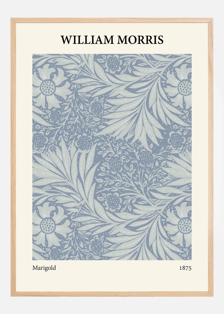 Ez a gyönyörűen megtervezett William Morris-plakát az 1875-ös "Marigold" mintát mutatja be lenyűgöző kék színpalettában. A minta részletgazdagsága és természetközeli stílusa bizonyítéka Morris képességének, hogy műalkotásokat hozzon létre, amelyek tisztelik és tükrözik a természet szépségét. Ez a dizájn a viktoriánus kor kézművességét és az Arts and Crafts mozgalom kézzel készített tárgyak iránti elismerését képviseli.