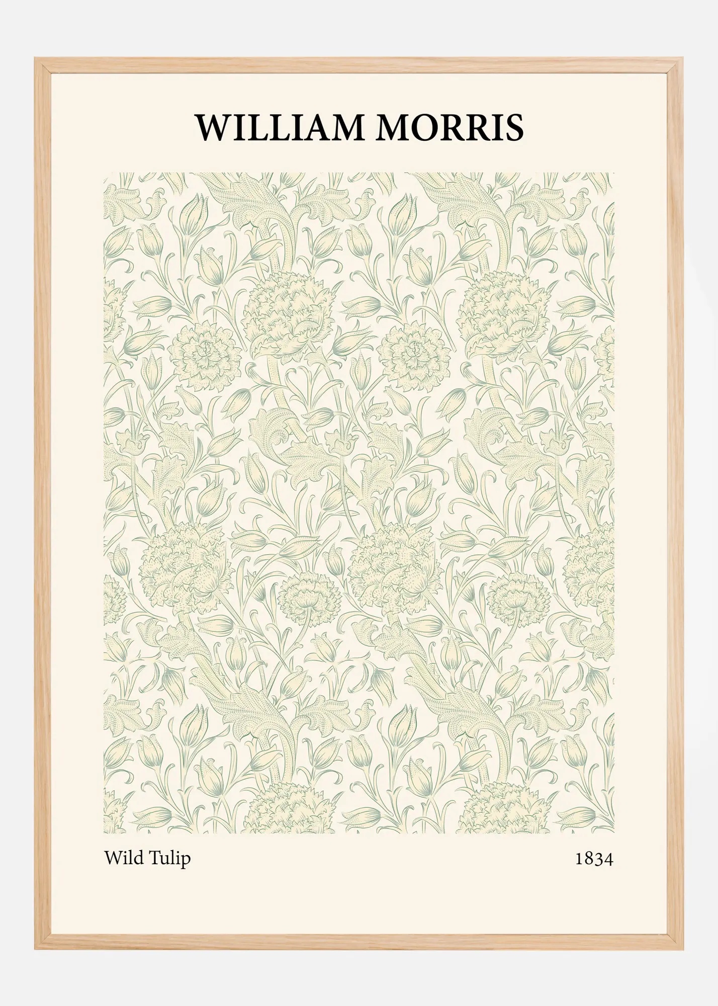 Ez a William Morris-poszter, "Vad Tulipán", a növényvilág szimfóniája, amely megragadja a természetes világ szépségét és eleganciáját. A posztert bonyolult tulipán- és levélmintával díszítik, kellemes zöld és halvány arany színek palettájával, amely egy krémszínű háttéren táncol. Minden virág és levél Morris részletgazdag érzékével és kompozíciójával készül, ami mély és élénk minőséget kölcsönöz a designnak.