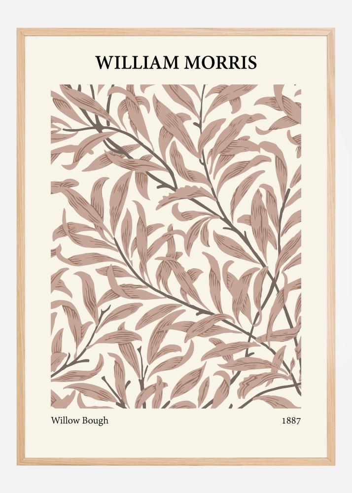 Ez a poszter dizájn William Morris "Willow Bough" című művét ünnepli 1887-ből, és csodálatosan mutatja be Morris természetközeli mintázatok iránti elkötelezettségét. Az ívesen formált fűzlevelek szétterülnek egy krémszínű háttéren, harmonikus kontrasztot teremtve, amely egyszerre nyugtató és esztétikailag vonzó. A barna és bézs árnyalatok meleg érzést közvetítenek, ami jellemző Morris munkásságára.