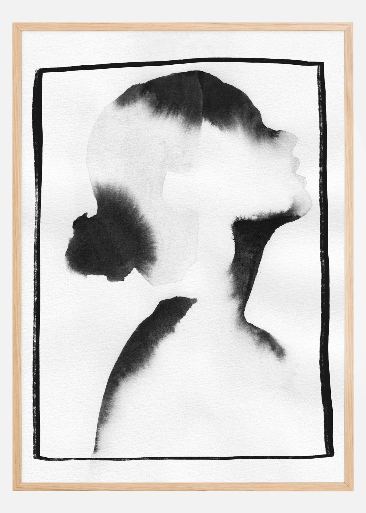 Egy puha akvarellposzter egy nő profiljával. A puha akvarelltechnika segítségével a nő haja és arca úgy jön létre, hogy a festék szétterjed a vízben. Ez egy megragadó fekete-fehér képet hoz létre, amely jól fog mutatni egy világos háttéren.