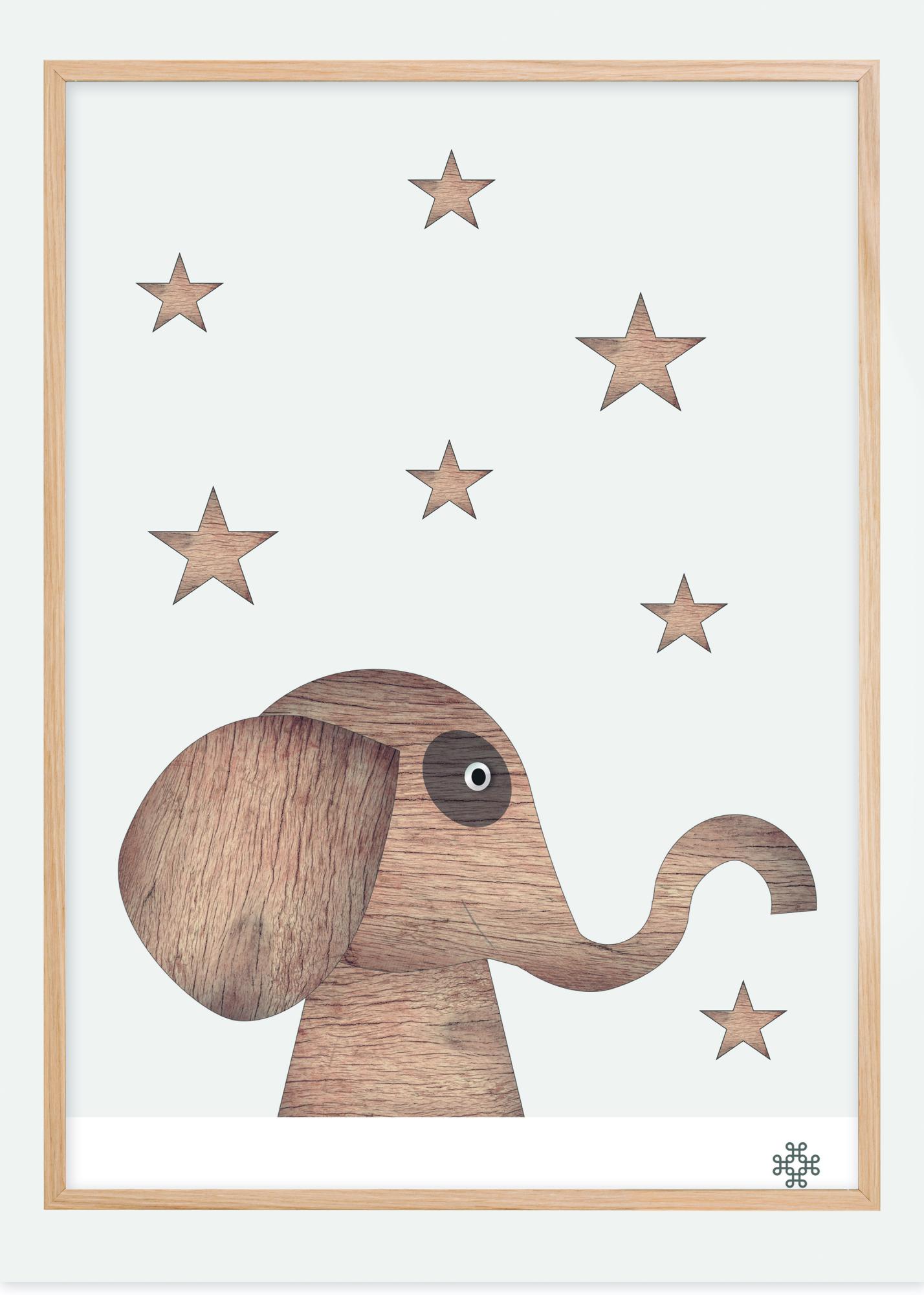 Poszter fára emlékeztető dizájnnal, amelyen egy cuki elefánt látható csillagokkal körülvéve. Az elefánt egy fára emlékeztető kollázsból készült, amely szerkezeti hatást kölcsönöz neki. A csillagok körülötte vannak elhelyezve, hogy megteremtsék ezt a szellemes képet, amely pozitív és vidám kiegészítés bármely gyerekszobához.