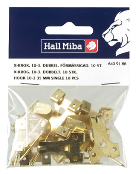 Sárgaréz színű dupla X-kampó fa vagy gipszkarton falra történő szereléshez. Terhelhetőség legfeljebb 10 kg.