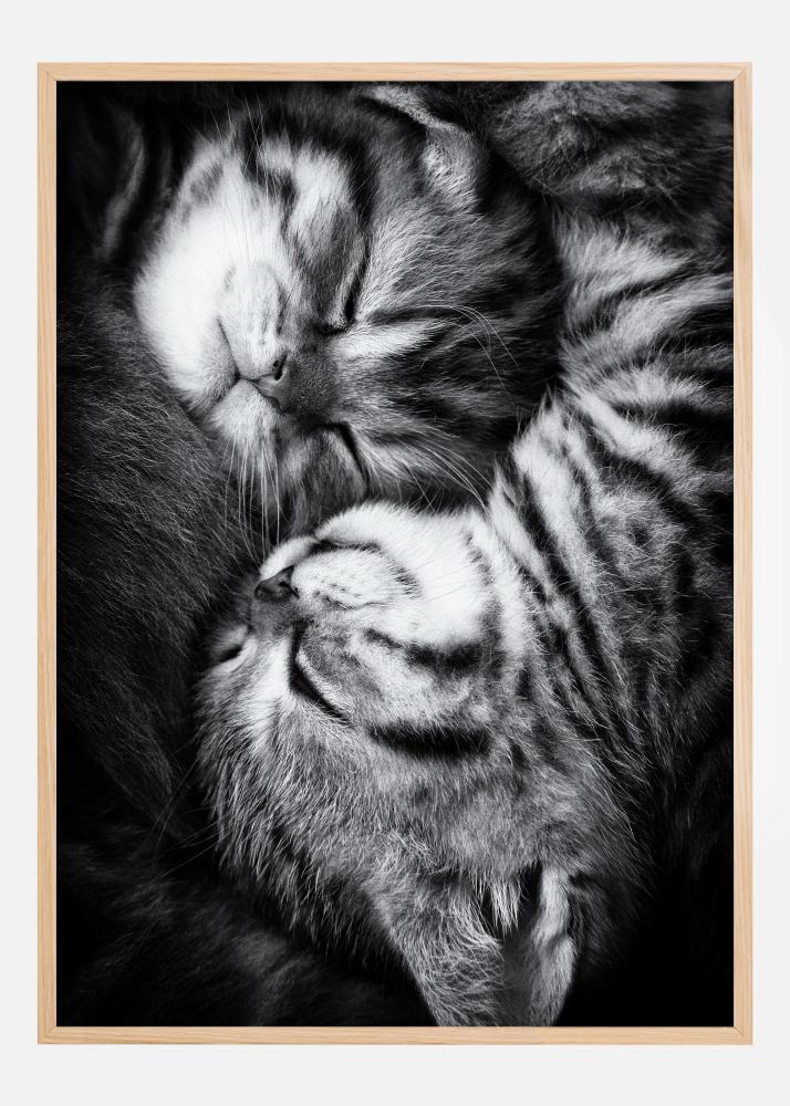 Egy aranyos állatposzter két alvó kiscicával. Vedd meg ezt a nyomatot, és élvezd az ölelés érzését, miközben nézed ezeket az aranyos ölelkező macskákat.