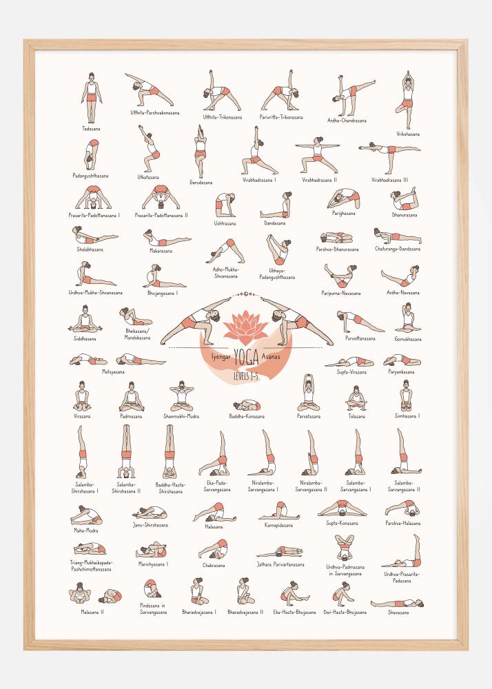 Ez a színes és inspiráló poszter az Iyengar Jóga Ászanák széles választékát mutatja be az 1-5. szinthez, élénk és magával ragadó dizájnnal. Minden ászana világosan ábrázolva van egy részletes és színes illusztrációval, amely kiemeli annak formáját, és azonnali vizuális megértést nyújt minden pózhoz. A pózok nevei minden illusztráció mellett, szanszkrit nyelven vannak feltüntetve, ami értékes és oktató jellegű forrássá teszi a posztert.