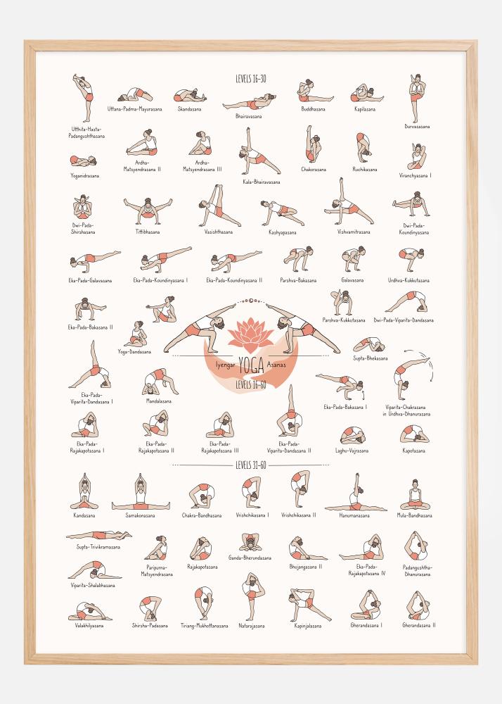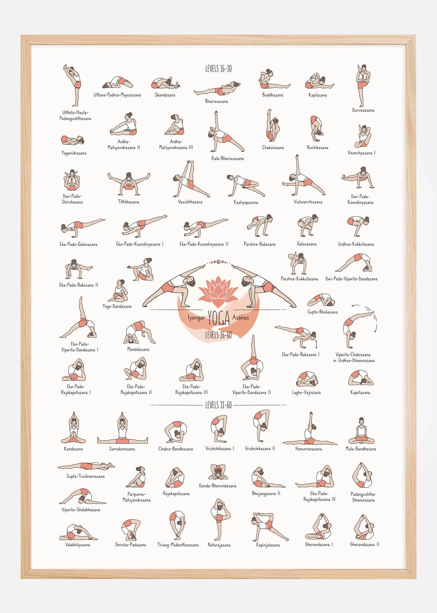 Ez a színes és oktató jellegű poszter útmutatást nyújt az Iyengar jóga aszanákhoz, azok számára, akik középhaladó és haladó szinten vannak, a 16-tól a 30-as szintig. Az aszanákat földszínek palettájával illusztrálják, amelyek kiemelik az egyes pozíciók egyedi formáját és szerkezetét. A gyakorlatokat gondosan számozták és szanszkrit nyelven nevezték el, hogy széles közönséget szolgáljanak ki.